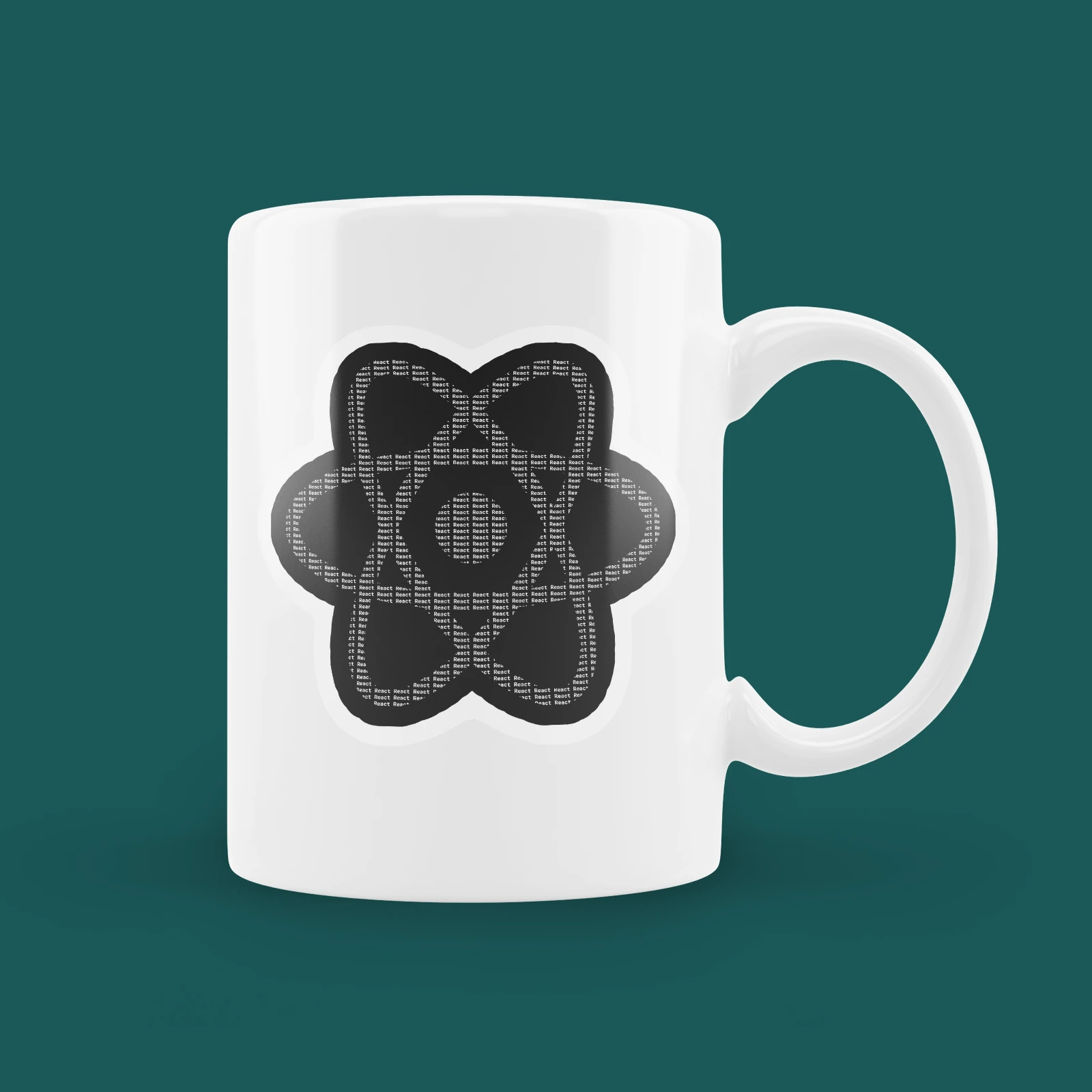This mug is inspired by the iconic React logo, but with a creative twist — its lines are made entirely of code. ☕⚛️