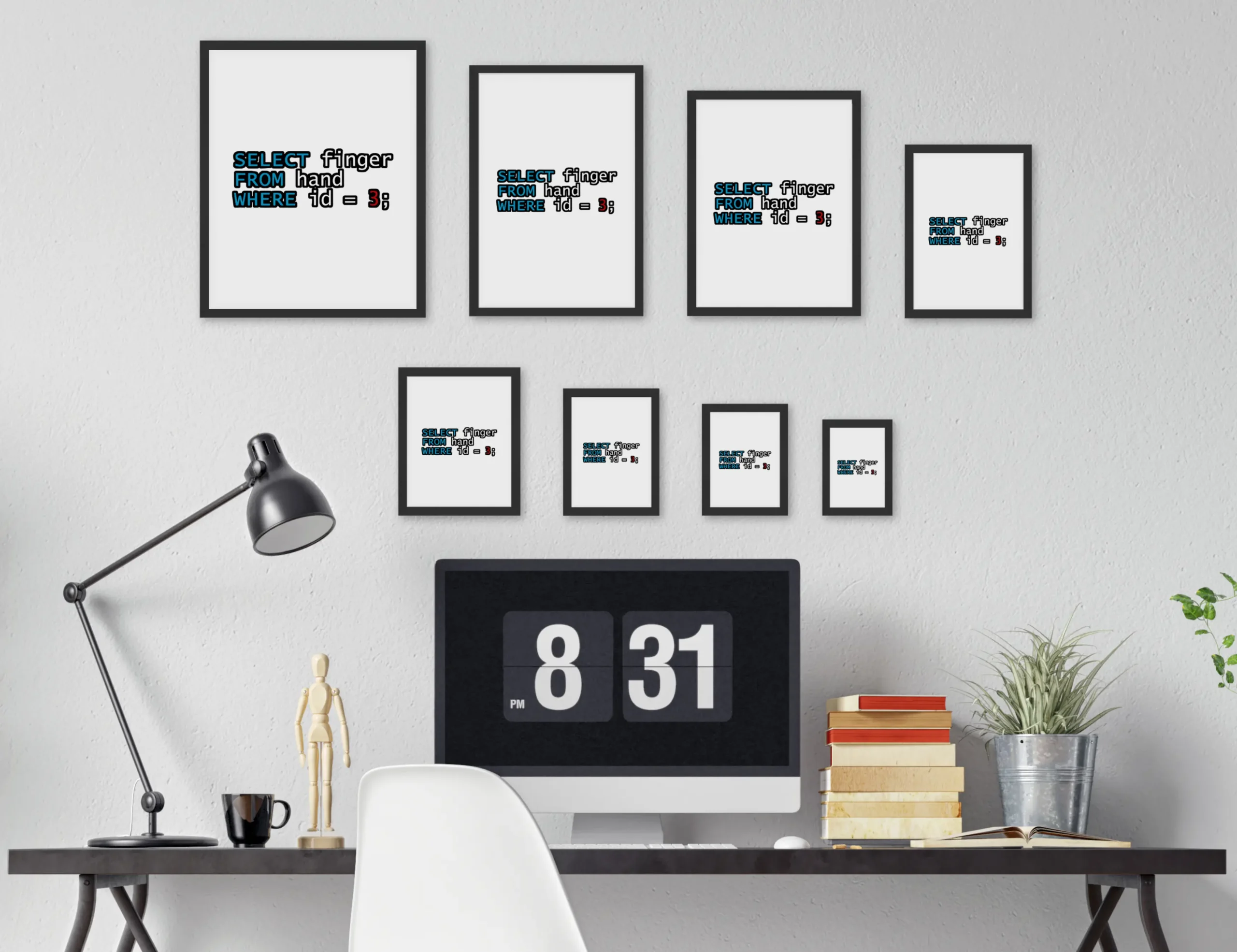 But you can hang SELECT finger FROM hand on your wall and sip a daily dose of programming fun. ✔