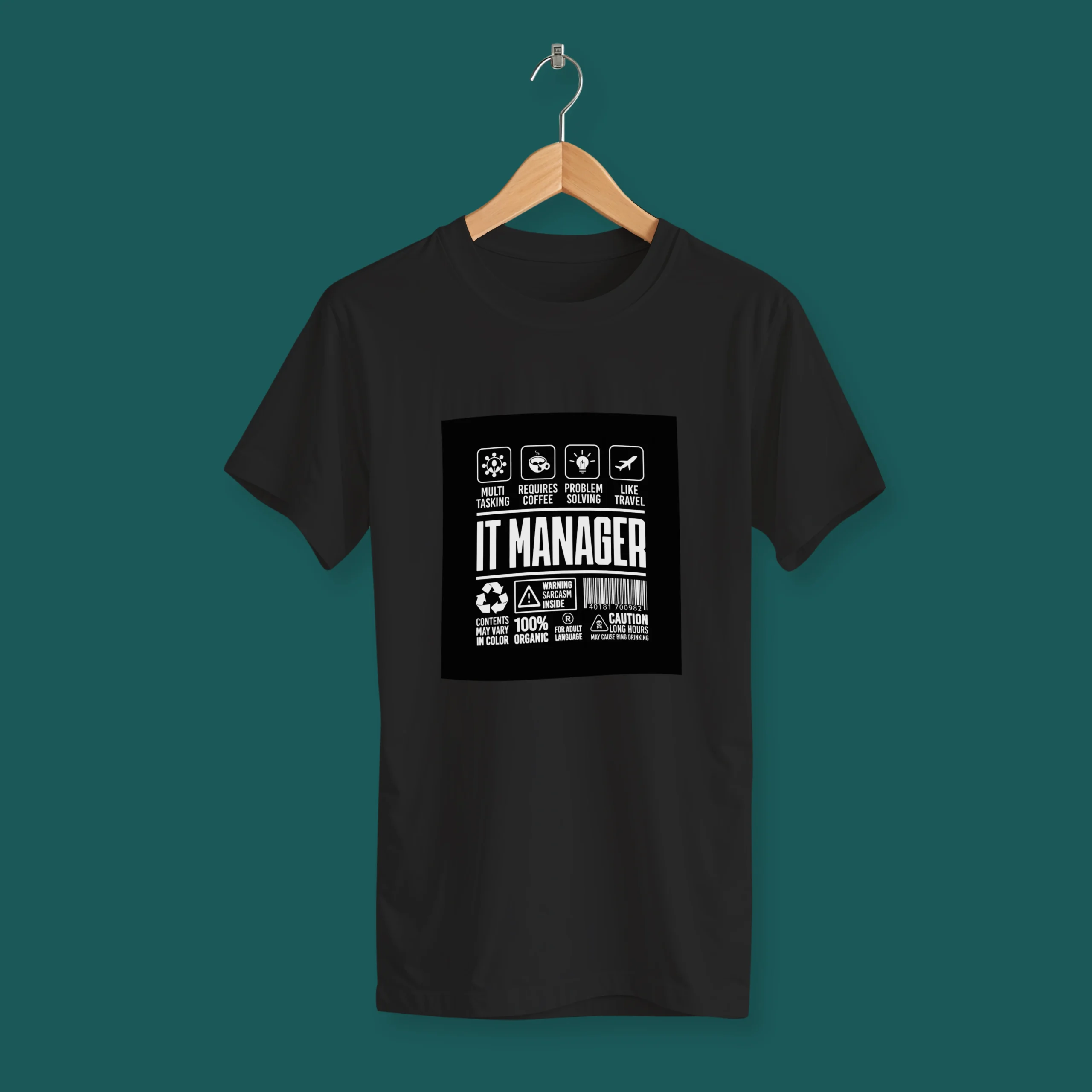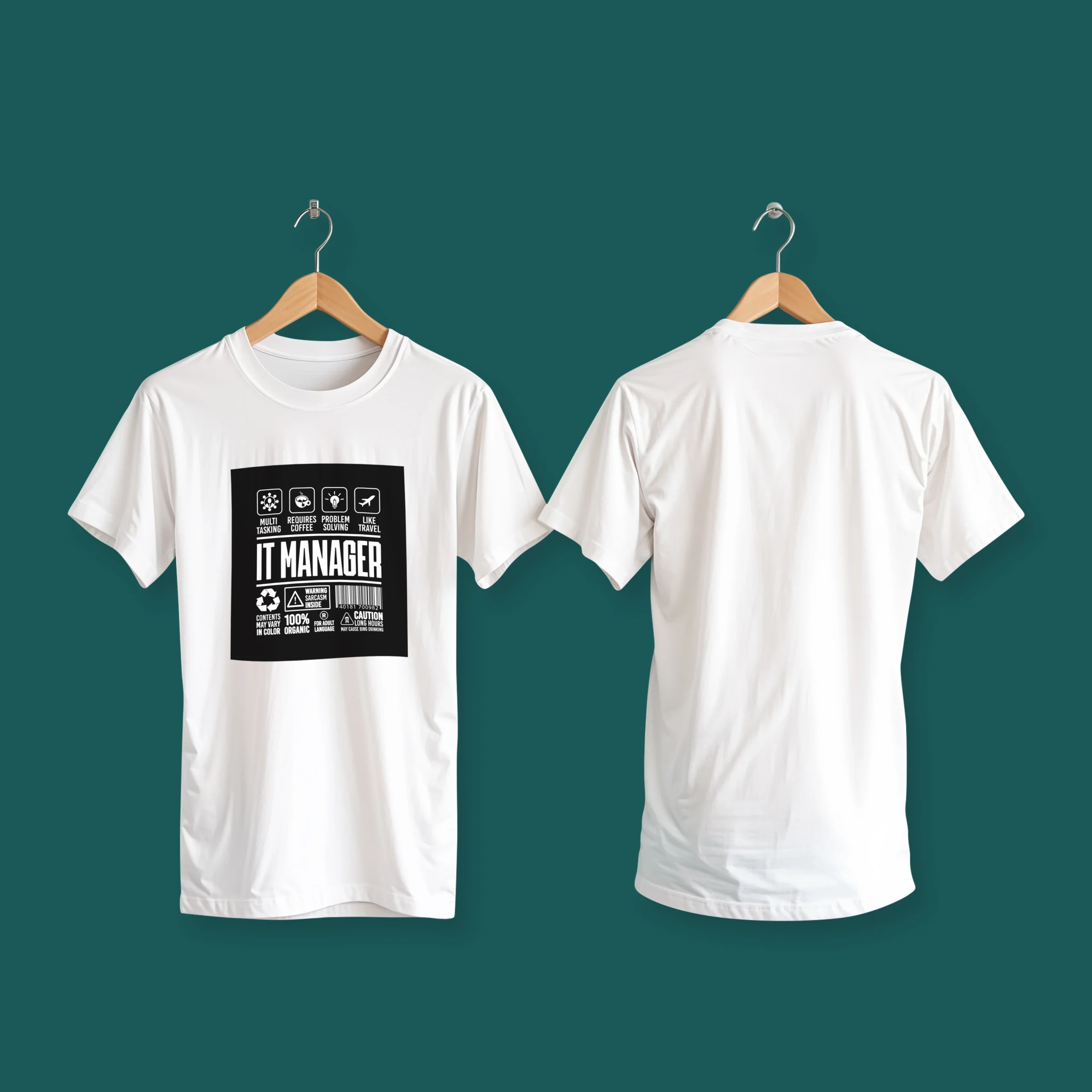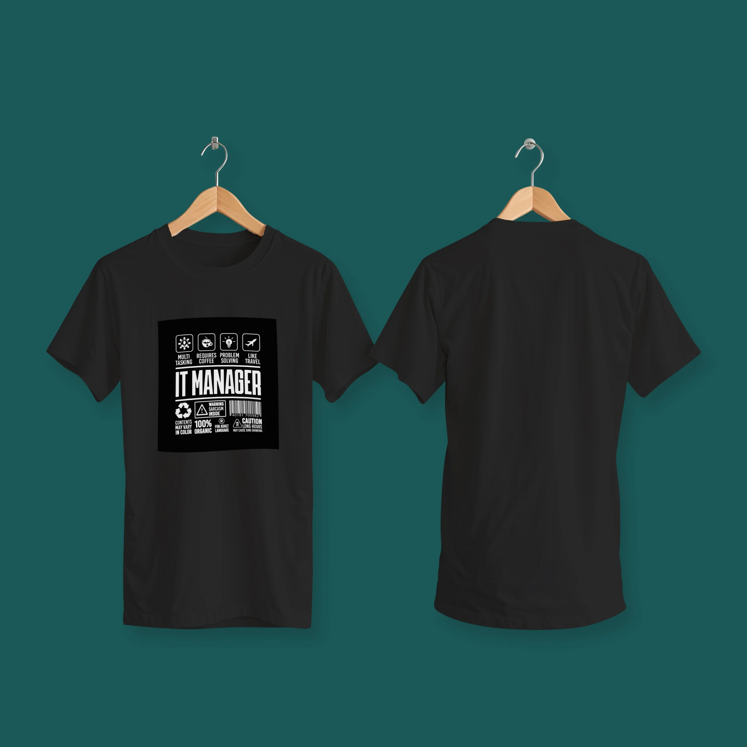 این تیشرت با نوشته و آیکون‌های بامزه، زندگی و خصوصیات یک مدیر IT رو به شکل طنز نشون میده؛ از عشق به قهوه ☕ تا چندوظیفگی و سفر ✈️